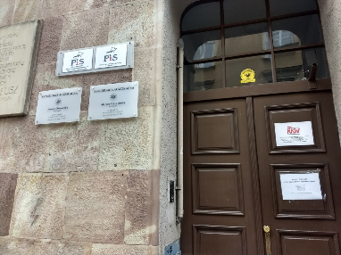 kamienica na prawo od Łuku Cezara (od strony Starówki), gdzie kiedyś były biura Solidarności i PIS (tabliczka na drzwiach z logo RKW),